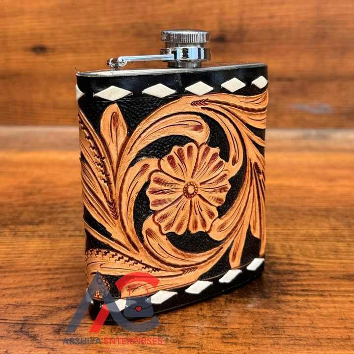 Hand Tooled Stainless Steel Hip Flask