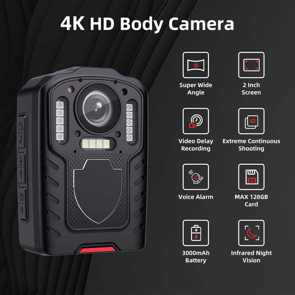 Nouvelle caméra portable 4K avec écran de 2 pouces, caméra embarquée pour la sécurité, enregistreur vidéo portable, vision nocturne infrarouge