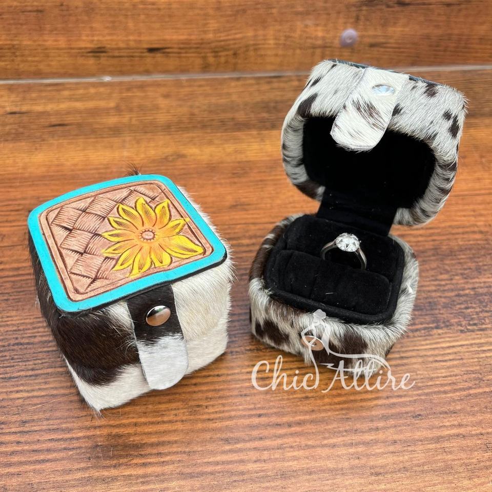 Product name:Hand Tooled Cowhide Leather Engagement Ring Box