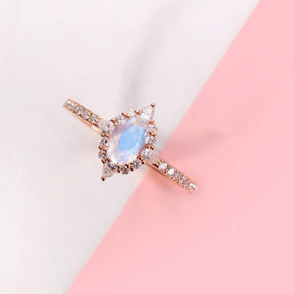 Forme de Diamant:Bagues de fiançailles en pierre de lune