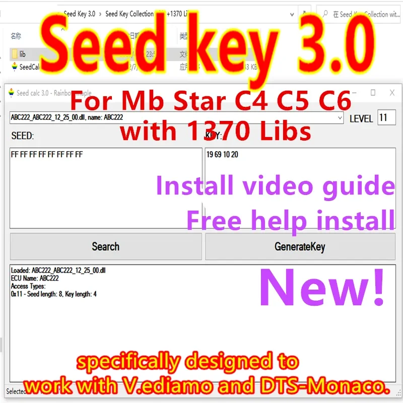 Le plus récent calculateur de clé de démarrage 3.0 pour les voitures MB pour MB Star C4 C5 C6 spécialement conçu pour fonctionner avec la clé de démarrage Vediamo DTS-Monaco