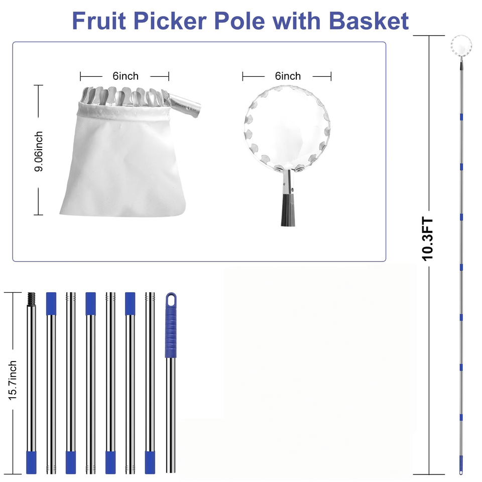 Nouveau cueilleur de fruits télescopique à long manche en acier inoxydable pour pommes, poires, mangues, avocats
