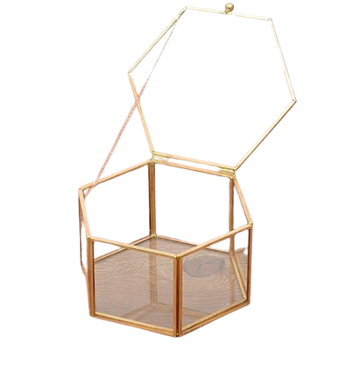 Nouveau Style boîte à bijoux décor à la maison cadeaux Style moderne cadre en or grande vente métal et verre clair boîte à bijoux