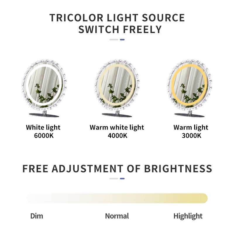 Miroir de maquillage LED à trois couleurs réglables, miroir de table de bureau, miroir de toilette clair