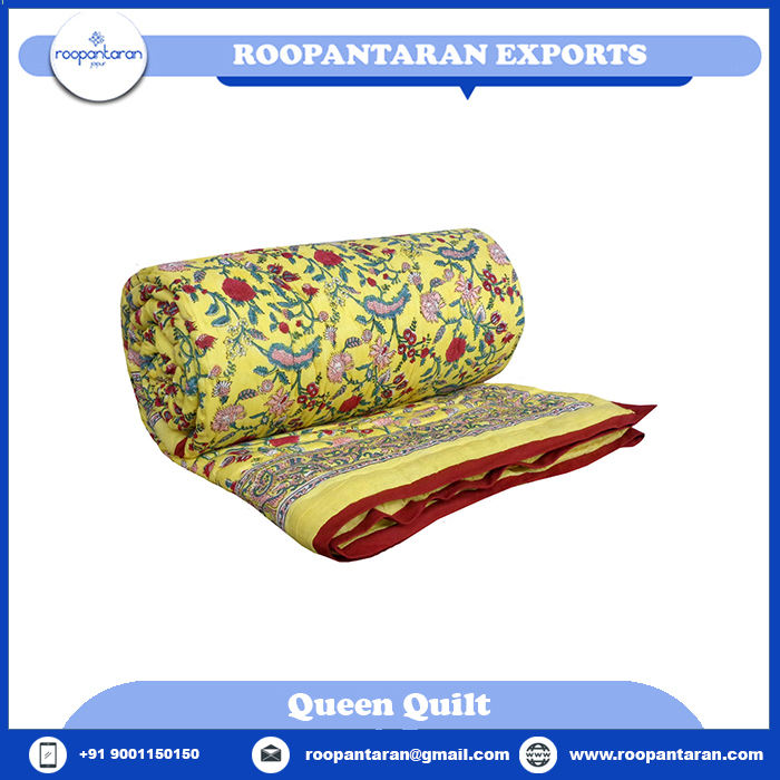 Le plus récent bloc de main traditionnel indien tendance imprimé doux coton biologique Voile Dohar reine taille couvertures décor à la maison en vente