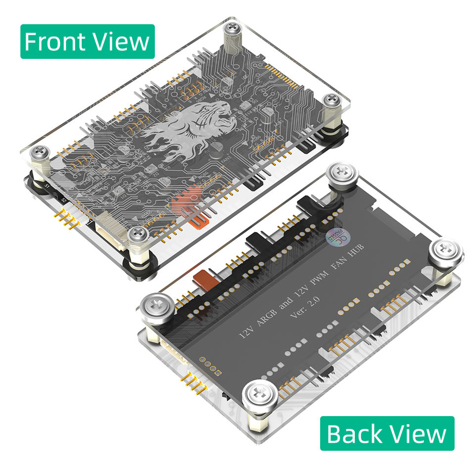 Nouvelle version 2 en 1 6 voies 5V ARGB et 12V PWM DC Fan Hub avec boîtier en acrylique et entretoise magnétique pour ASUS/MSI 5V 3Pin LED