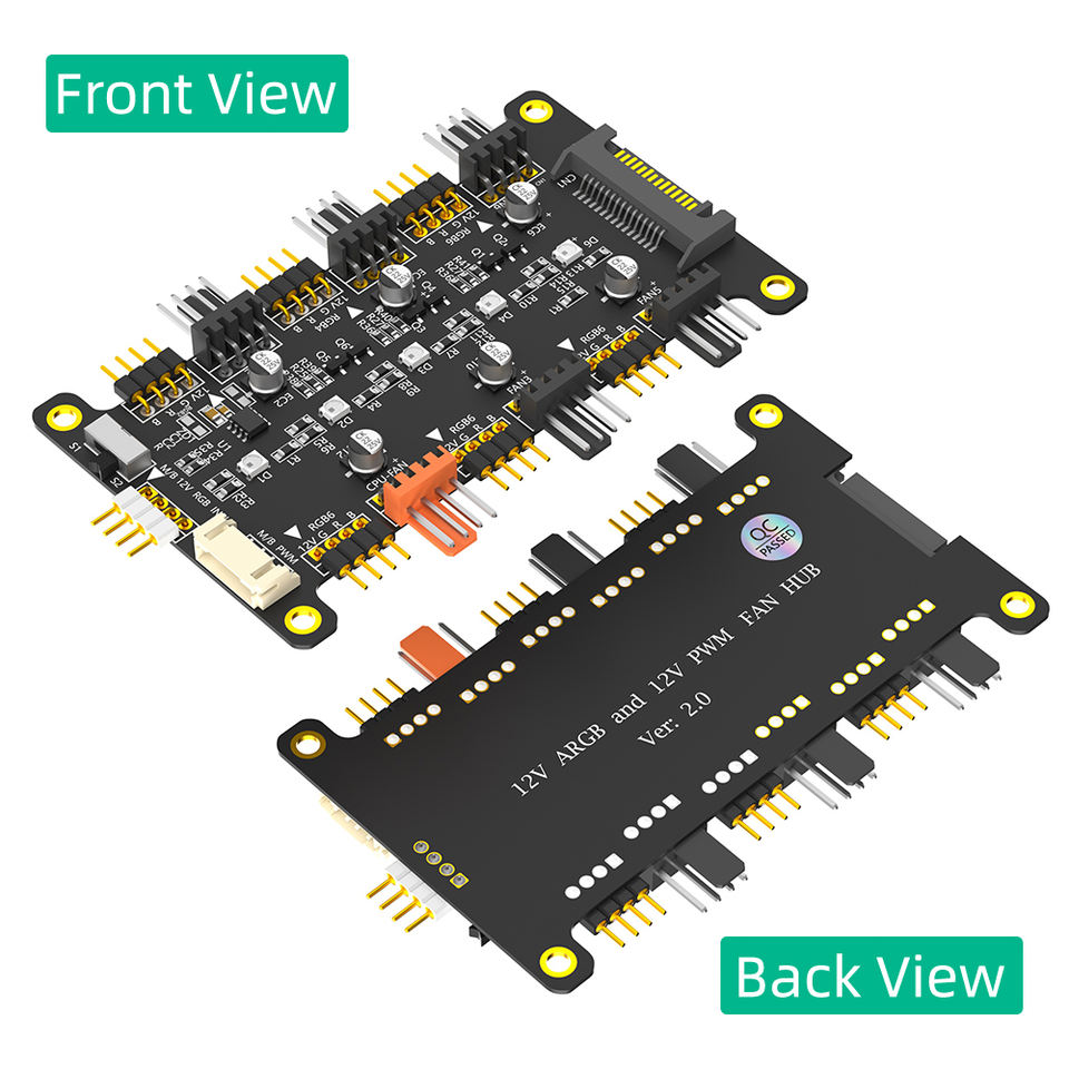 SélectionnerCouleur: 2 en 1 6 voies 5V ARGB et 12V PWM DC Fan Hub