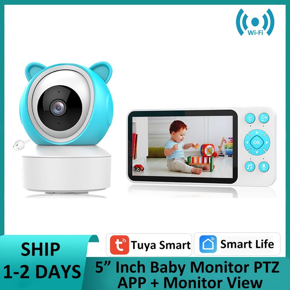 Nouvelle caméra de surveillance pour bébé vidéo de l'usine chinoise Tuya avec détection de pleurs, vision nocturne, panoramique, inclinaison, communication bidirectionnelle, sonnette vidéo