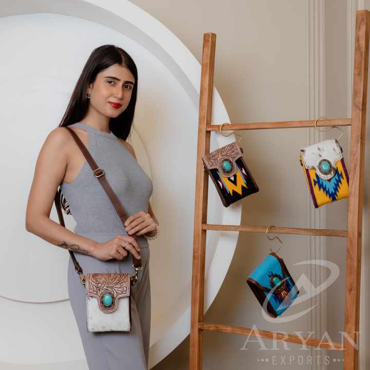 Product Name:Hair On Tooled Leather Cell Phone Crossbody Purse