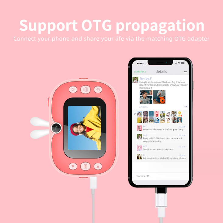 Le plus récent X106 mignon 2.4 pouces appareil photo instantané enfants enfants imprimante 200DPI BT4.0 sans fil double objectif 1080HD prise en charge imprimante Photo OTG