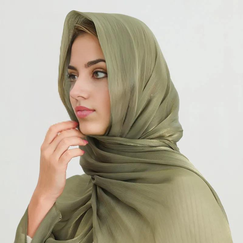 Le plus récent pour Amazon tendance dame lisse doux brillant soie châle crêpe froissé paillettes plaine miroitant Hijab pour les femmes musulmanes écharpe