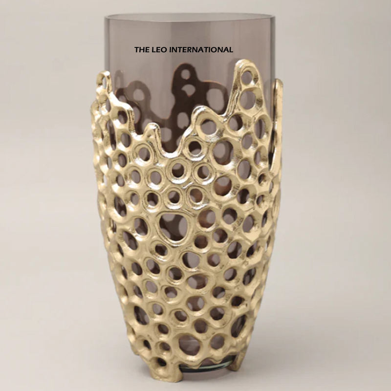 Nouvellement Arrivée Base En Métal Plaqué Or De Haute Qualité Avec Des Fleurs Blanches Designer Vase À Fleurs En Verre Clair Hôtel & Restaurant Table