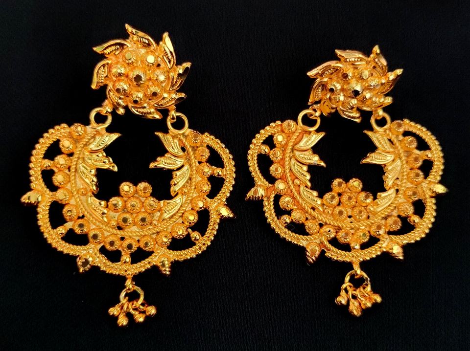 Boucles d'oreilles nouvellement arrivées serties de boucles d'oreilles Jhumka plaquées or 22CT bijoux pour femmes portées par les exportateurs indiens
