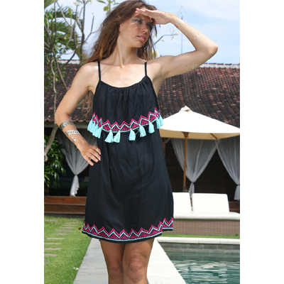 Robe courte asymétrique style Boho pour femmes, tunique décontractée, sans manches, avec col volant brodé, bretelles Spaghetti, nouveauté, été