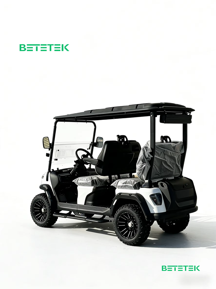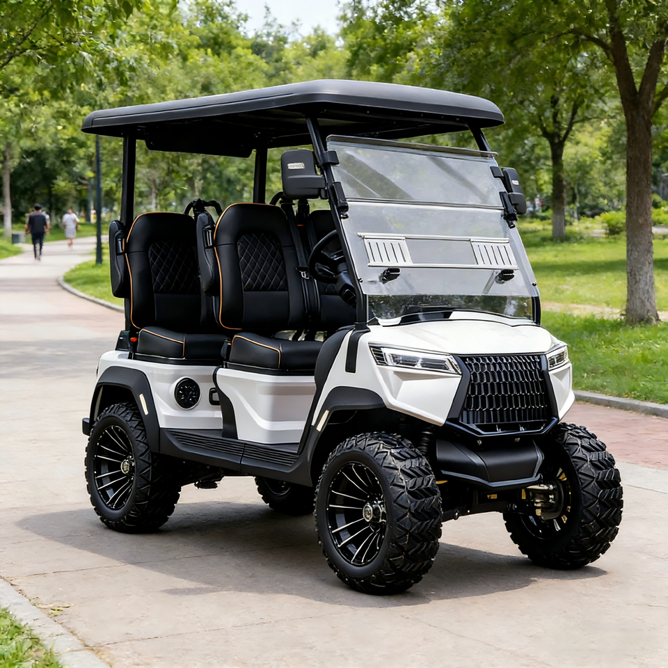 Navette de plage 4 places de conception nouvelle, LSV (véhicule à faible vitesse), voiturette de golf électrique prête pour le sable pour les excursions en station balnéaire