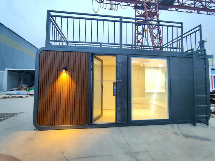 Maison préfabriquée de type capsule en forme de pomme, nouvelle conception haut de gamme, avec terrasse sur le toit