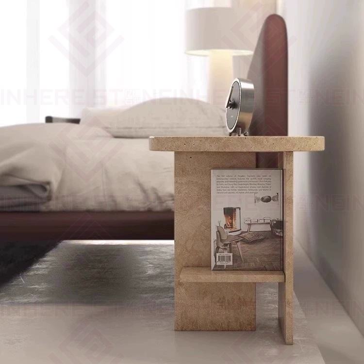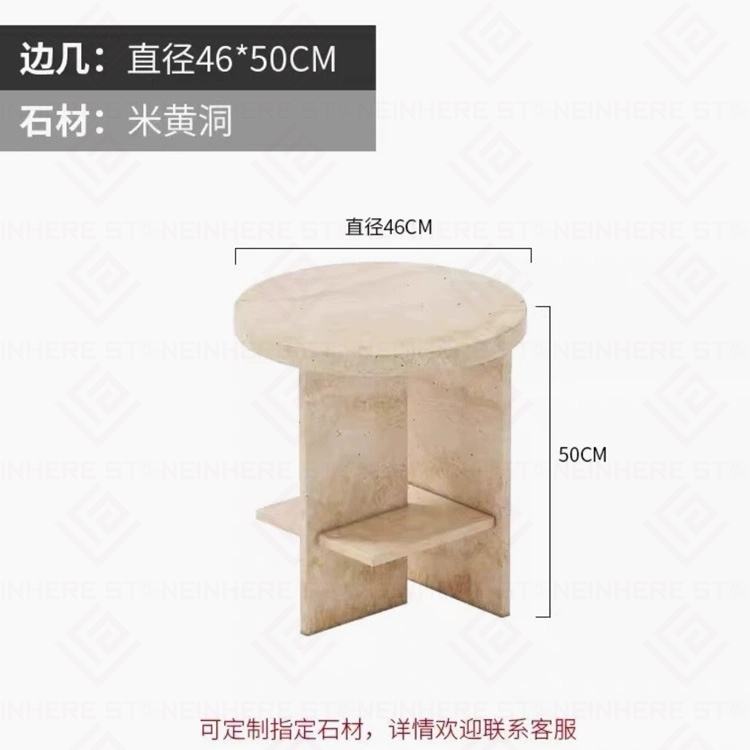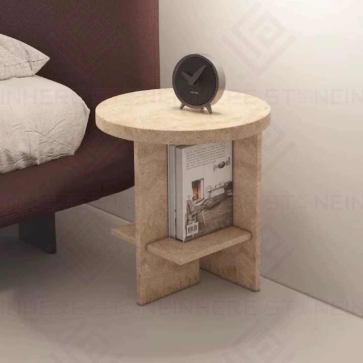Nom du produit:Table de chevet ronde en pierre naturelle de travertin beige italien