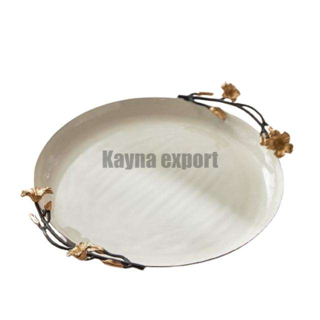 Nouvellement dernière conception fantaisie décoration de table en métal hôtels et restaurants artisanat plateau décoratif de service alimentaire