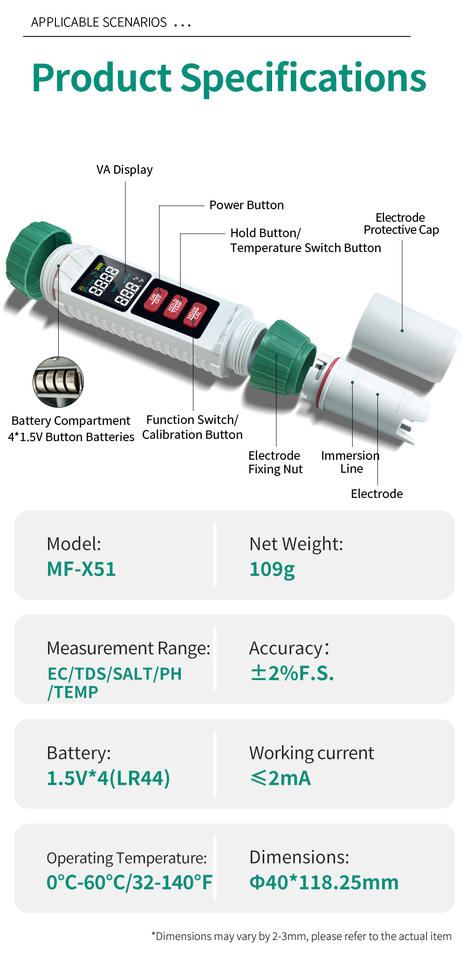 Testeur de qualité de l'eau multifonction 5 en 1 nouvellement lancé X51 | TDS/PH/EC/Salinité/Température, format de poche, sonde remplaçable, OEM ODM