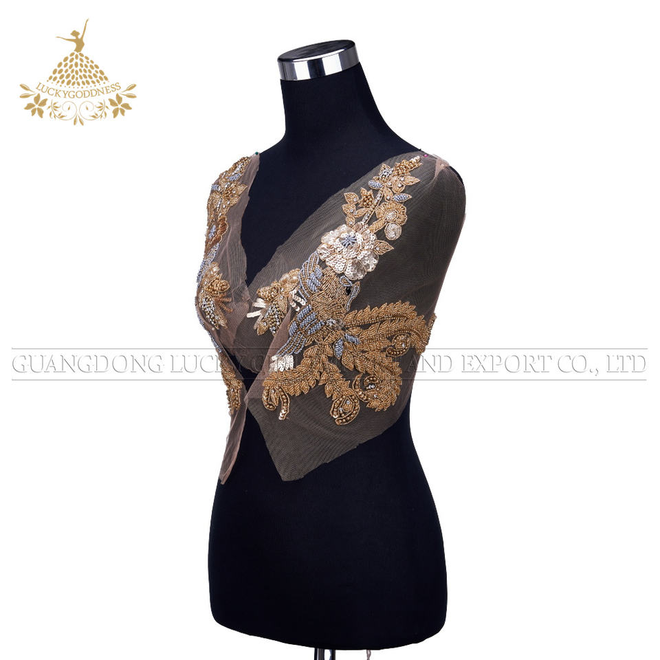 Nouvellement publié or ethnique rétro Patch corsage perles de cristal strass Appliques pour robes de soirée Technique-DRA-545 à coudre
