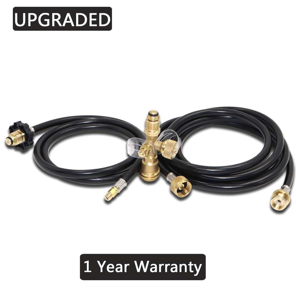 Kit d'adaptateur au propane nouvellement amélioré avec un raccord en T en laiton à 4 ports et des tuyaux à gaz à surface lisse de 5 pieds/12 pieds
