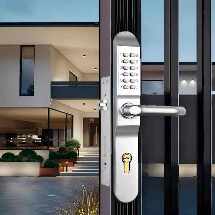 Serrure de porte en alliage d'aluminium de troisième génération, nouvelle version améliorée, avec entrée sans clé mécanique et poignée de verrouillage, pour cour.