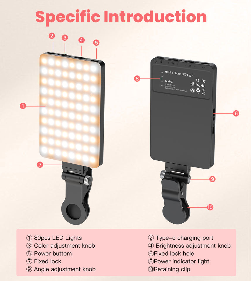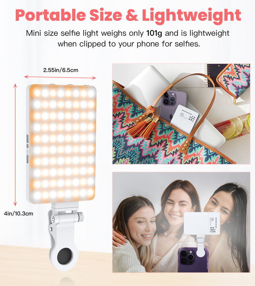 Newmowa 60 LED Haute Puissance Rechargeable Clip-On Vidéo Conférence Lumière Réglable 3 Modes Téléphone Pad Portable Haute Luminosité