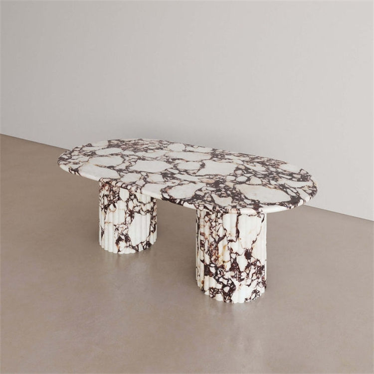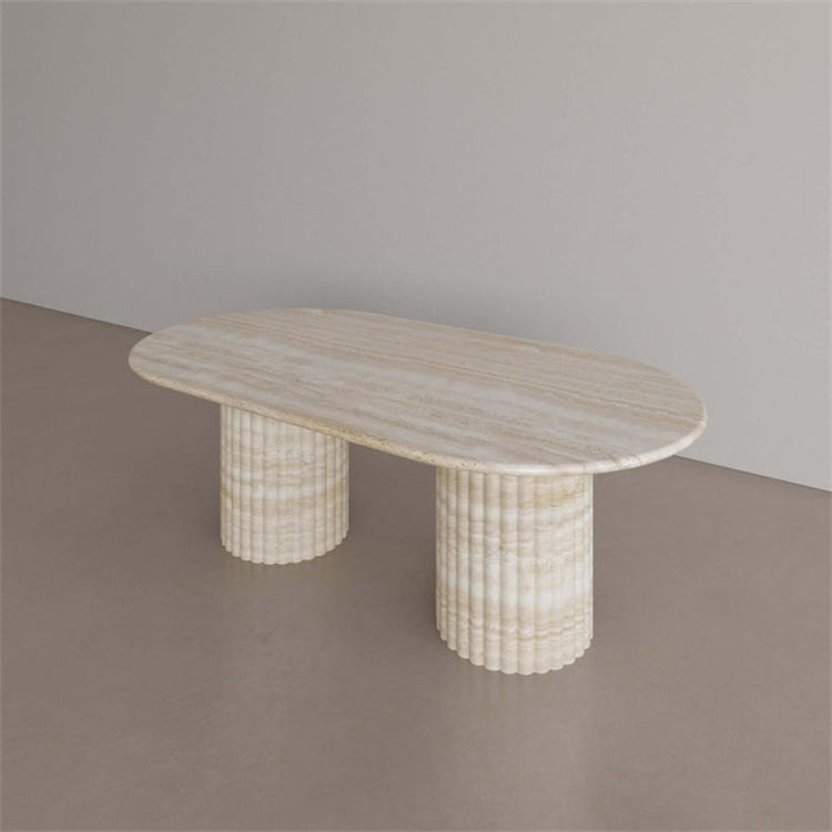 Tables basses de salon Newstar, base en colonne cannelée, piliers, pieds de table en pierre, table basse ovale en marbre travertin