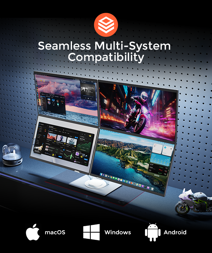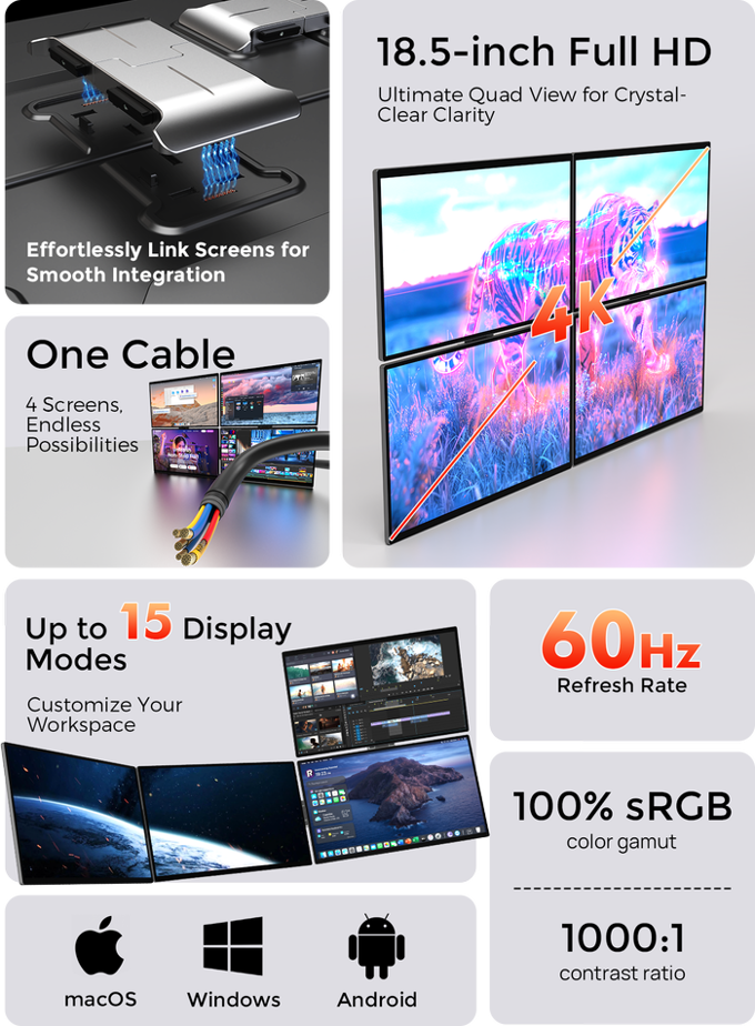 Moniteur portable triple écran de 18,5 pouces pour la productivité de nouvelle génération, type C, facile à transporter, connexion par un seul câble, extension d'écran