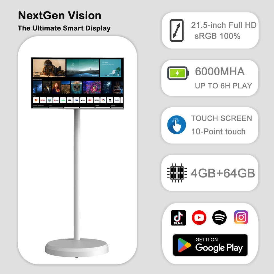NextGen-Moniteur de jeu TV HD de 22 pouces, écran LED intelligent et portable de 21.5 pouces avec armoire blanche, HDTV nouvelle génération