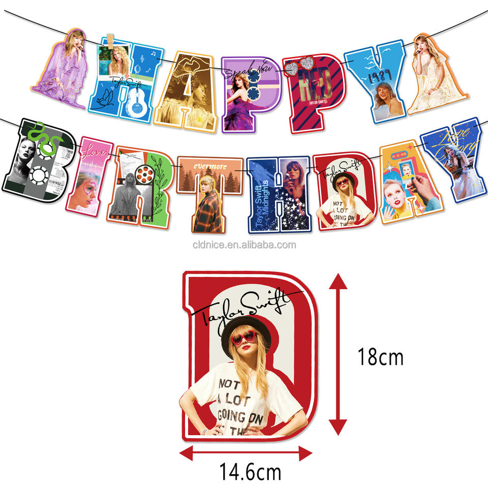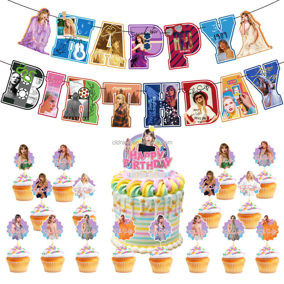 Superbe Décoration de Fête d'Anniversaire Thème Taylor Swift Concert Tour 2024 – Vaisselle Jetable, Décor de Fond, Ventilateurs, Cadeau pour Fille et Enfant
