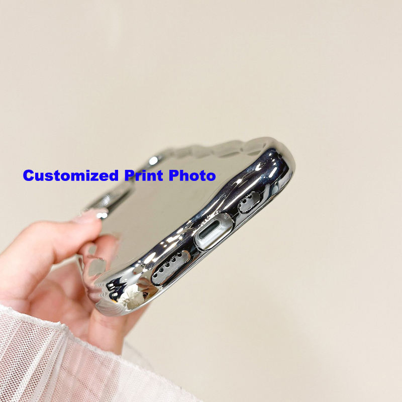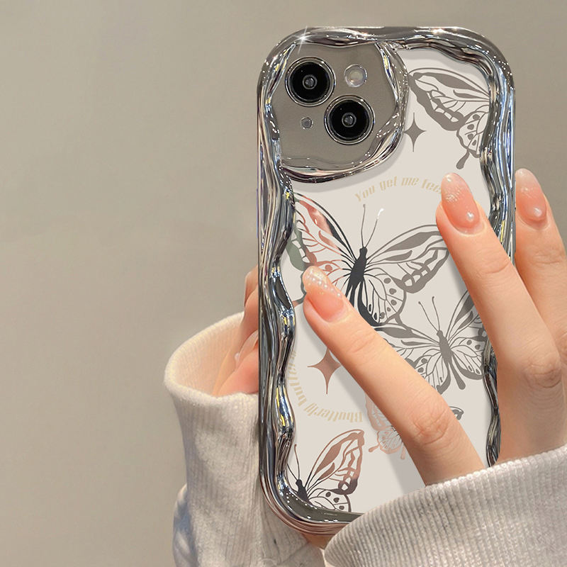 Étui de téléphone portable pour iPhone 11 12 13 14 15 16 17 Pro Max, avec motif papillon beige, bord ondulé, miroir électro-plaqué