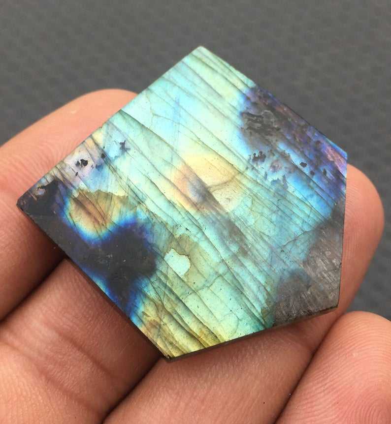 Jolie Collection, 1 pièce, Labradorite naturelle, forme de pentagone, fait à la main, grande taille, pierre de feu bleue, fabrication de bijoux