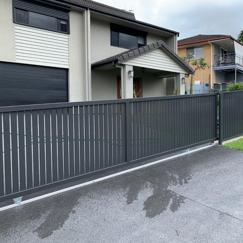 Ouvre-porte de jardin élégant avec télécommande, moteurs de portail, système d'automatisation de portail et conception de portail coulissant en aluminium