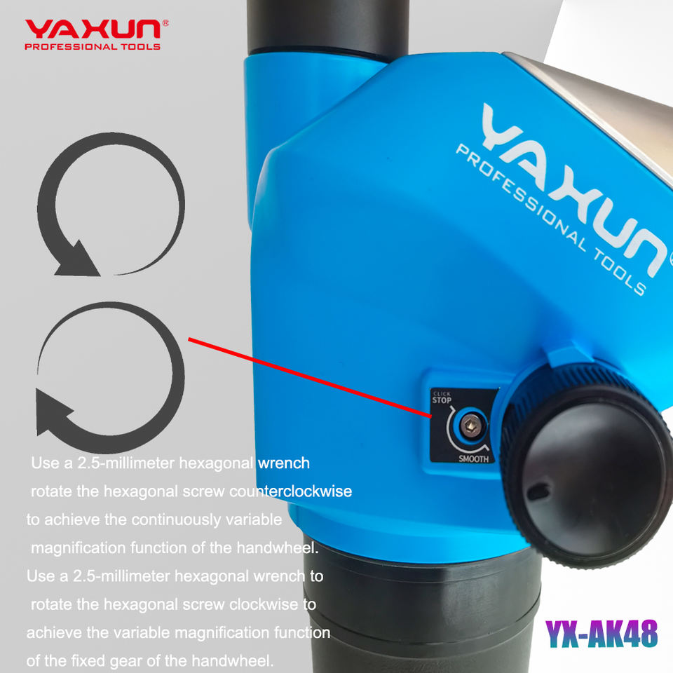 Système optique de qualité Microscope stéréoscopique trinoculaire YAXUN YX-AK48 Zoom continu 6,5X-52X Réparation industrielle de circuits imprimés mobiles