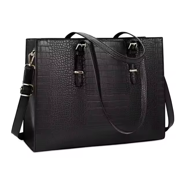 Sac fourre-tout pour ordinateur portable en cuir de crocodile de qualité supérieure avec deux sangles et motif lettres, mallette d'ordinateur professionnelle en polyester avec fermeture éclair