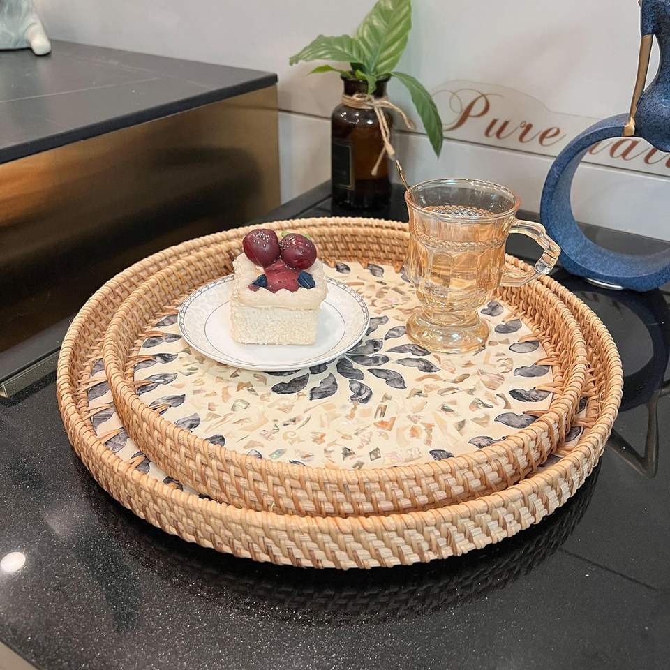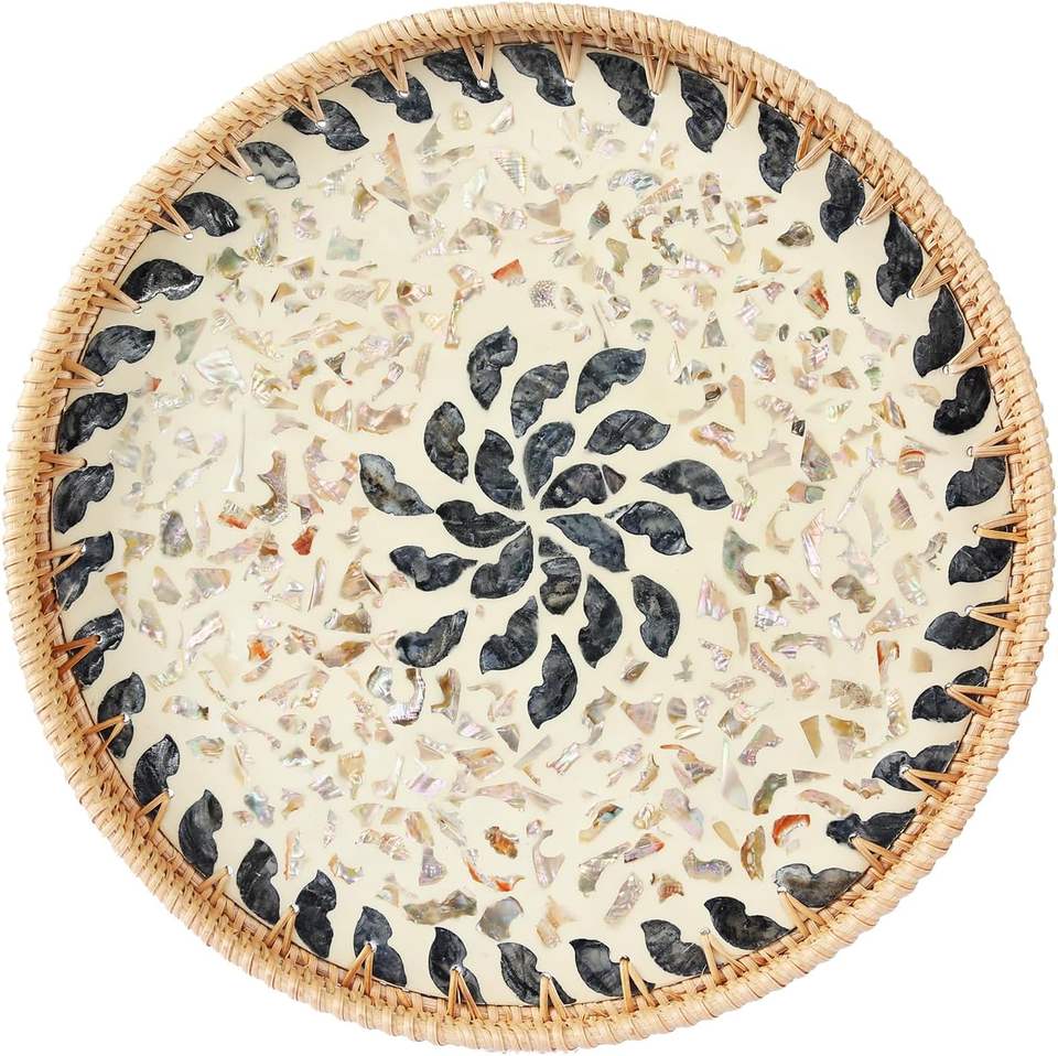 Product name:Natural rattan mother of pearl serving tray