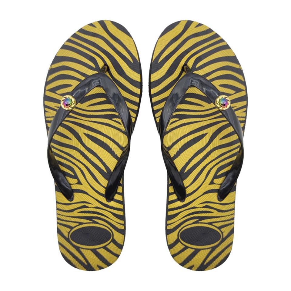 Nicecin – Tongs pour hommes à imprimé zèbre, noires brillantes avec décorations métalliques, sandales de plage souples antidérapantes, chaussons d'été OEM