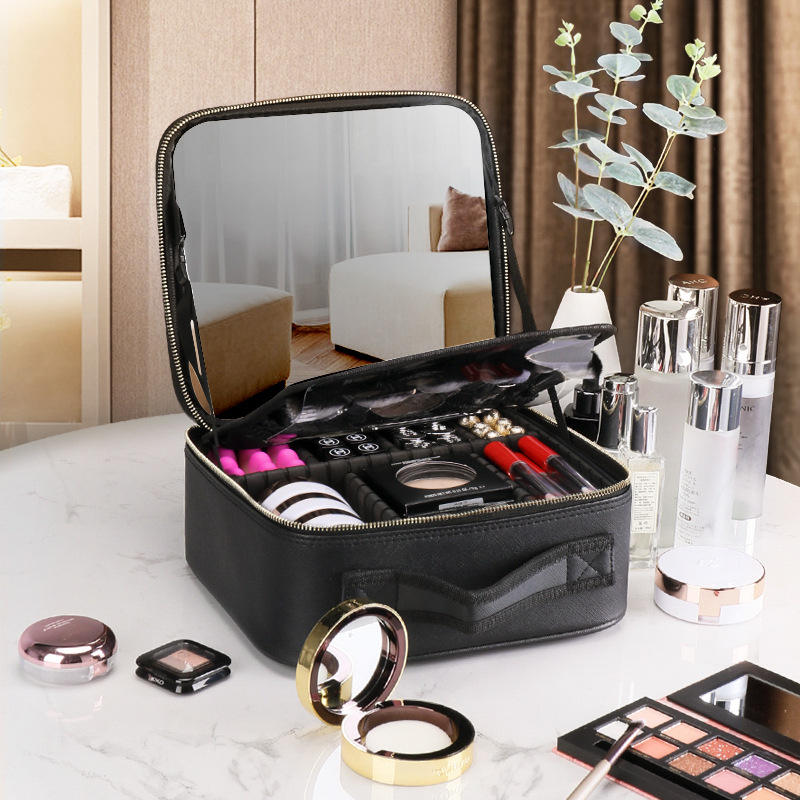 Trousse de maquillage Niceland, grande capacité, avec fermeture éclair, poignée souple, couleur unie, pour le rangement à domicile
