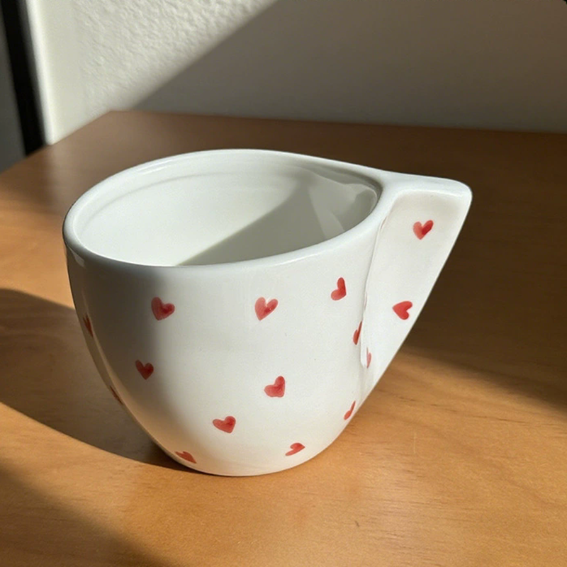 Tasse à café en céramique de coeur peinte à la main de tasse irrégulière créative de niche