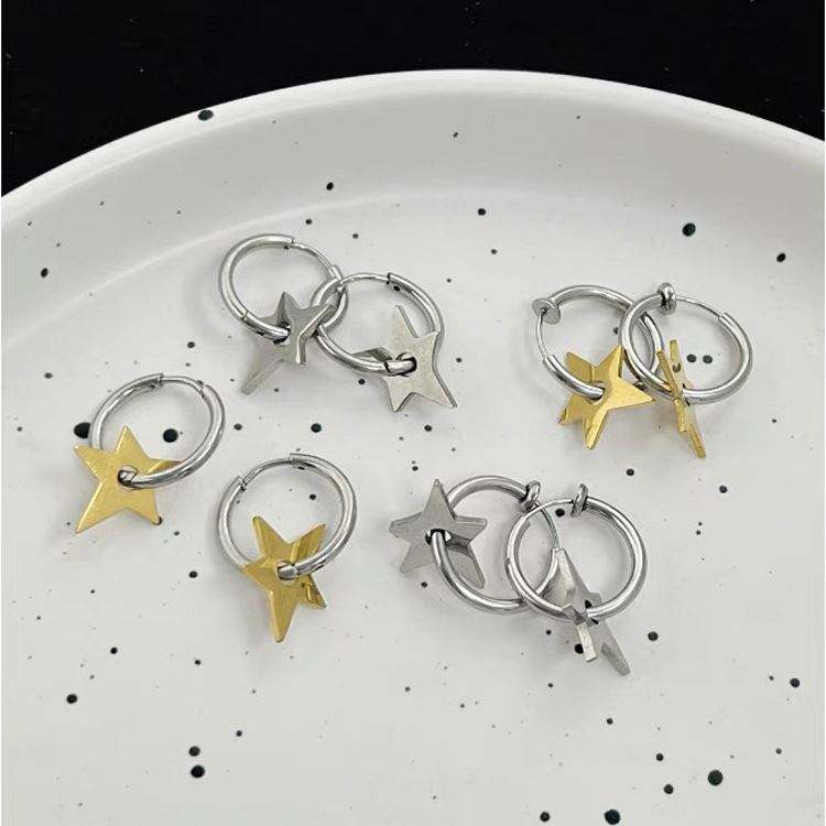 Niche Design Star Ear Clips Boucles d'oreilles en acier au titane de style froid pour les femmes pour prendre un bain sans enlever les piercings d'oreille