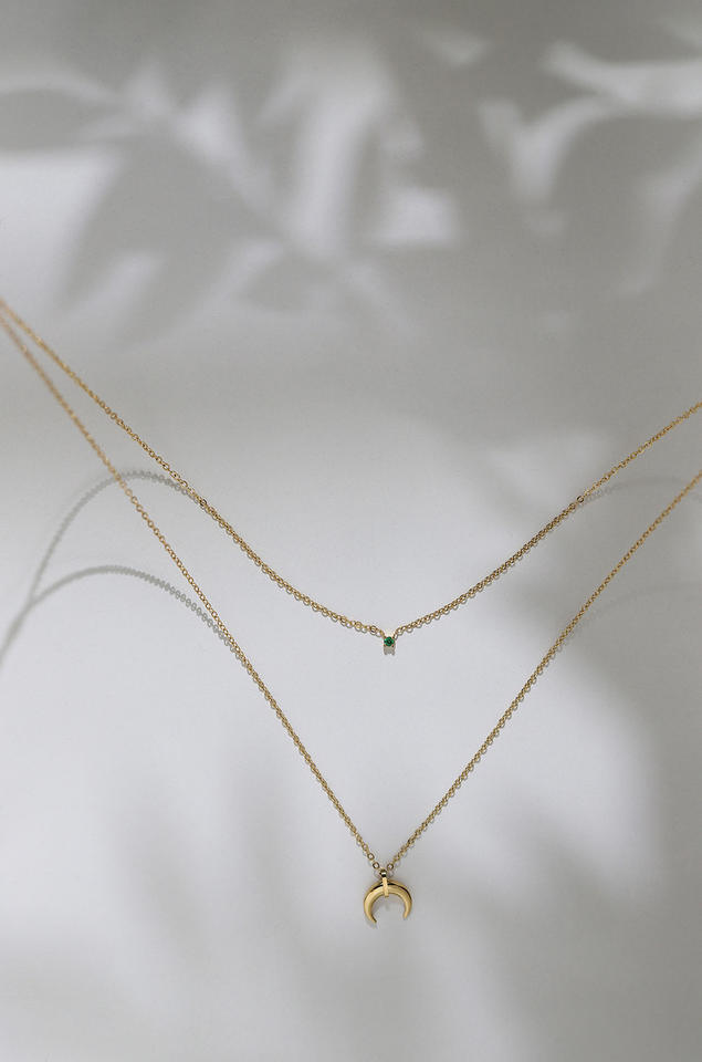 Collier en forme de croissant de lune inversé avec corne de diamant vert Niche