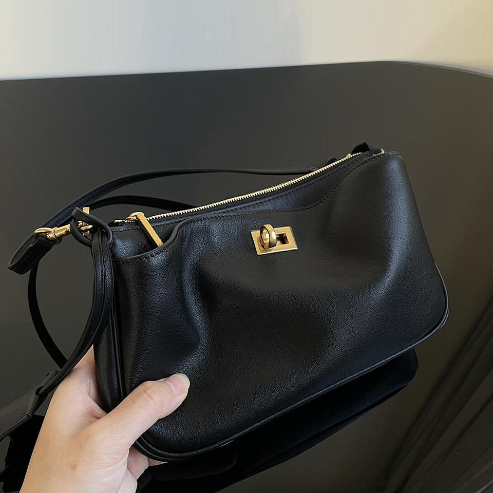Niche High-End Fashion Women's Genuine Leather Single Strap Crossbody Shoulder Bag with Zip Closure and Customizable Design