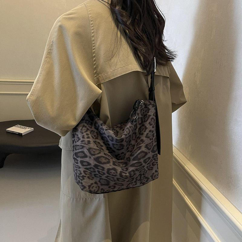 Niche design leopard print tote bag stylish retro shoulder bag large capacity
