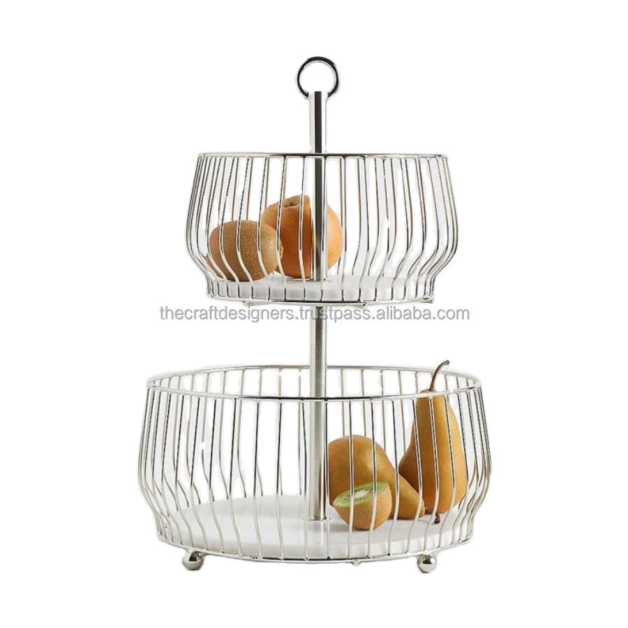 Paniers de fruits nickelés à 2 niveaux Base en marbre blanc Panier de stockage de fruits et légumes de haute qualité à prix compétitif