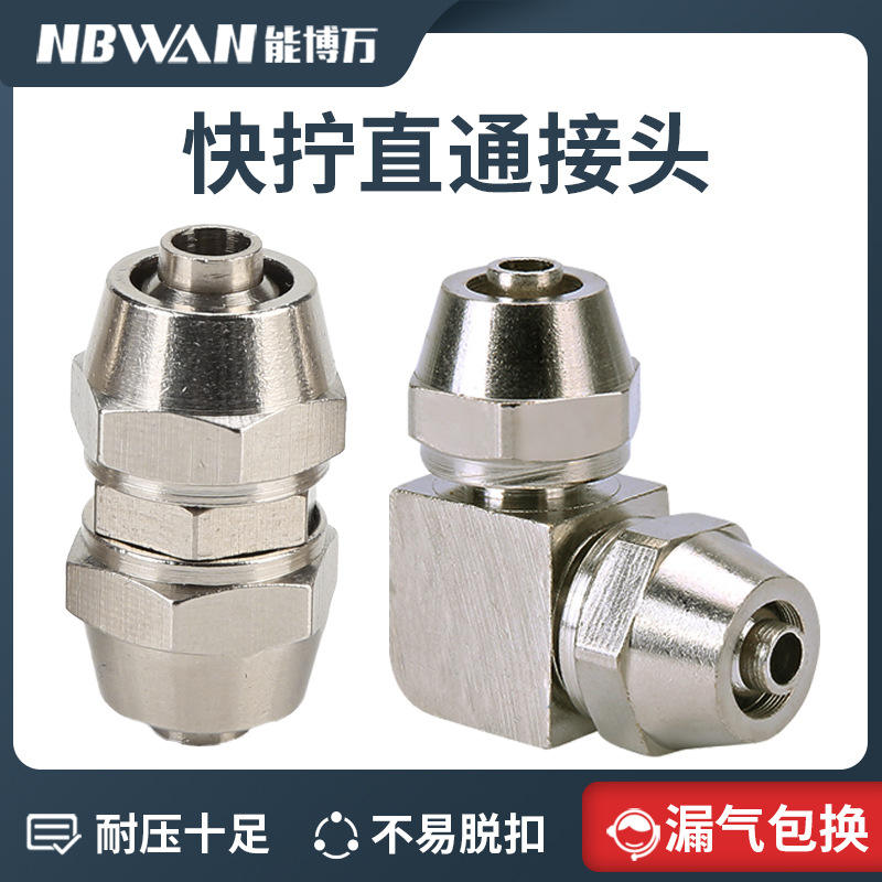 Raccord rapide en cuivre nickelé avec écrou de blocage, pneumatique, droit, pour tuyau d'air, tailles 6, 8, 10, 12, 16 mm