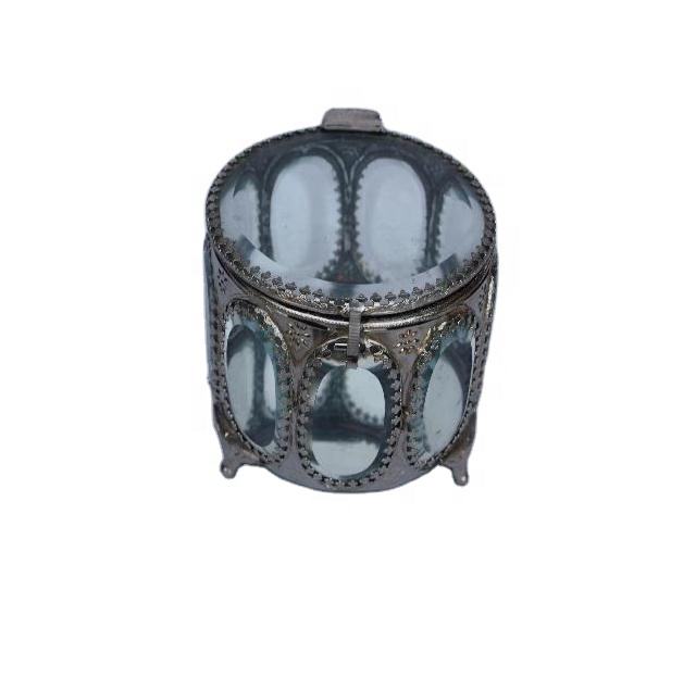 Boîte à bijoux en verre nickelé avec motif floral européen fait main en laiton, disponible en autres finitions, organiseur pour femmes et filles