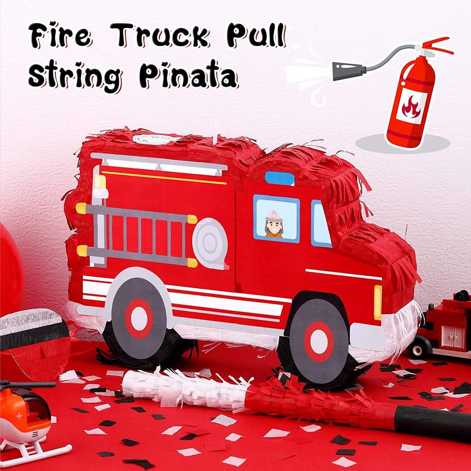 Nicro Kids Fire Fighting Truck Pinata for Kids Birthday Party Celebrations Decoration Red Firefighter Themed Party Favors Pinata