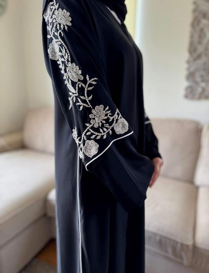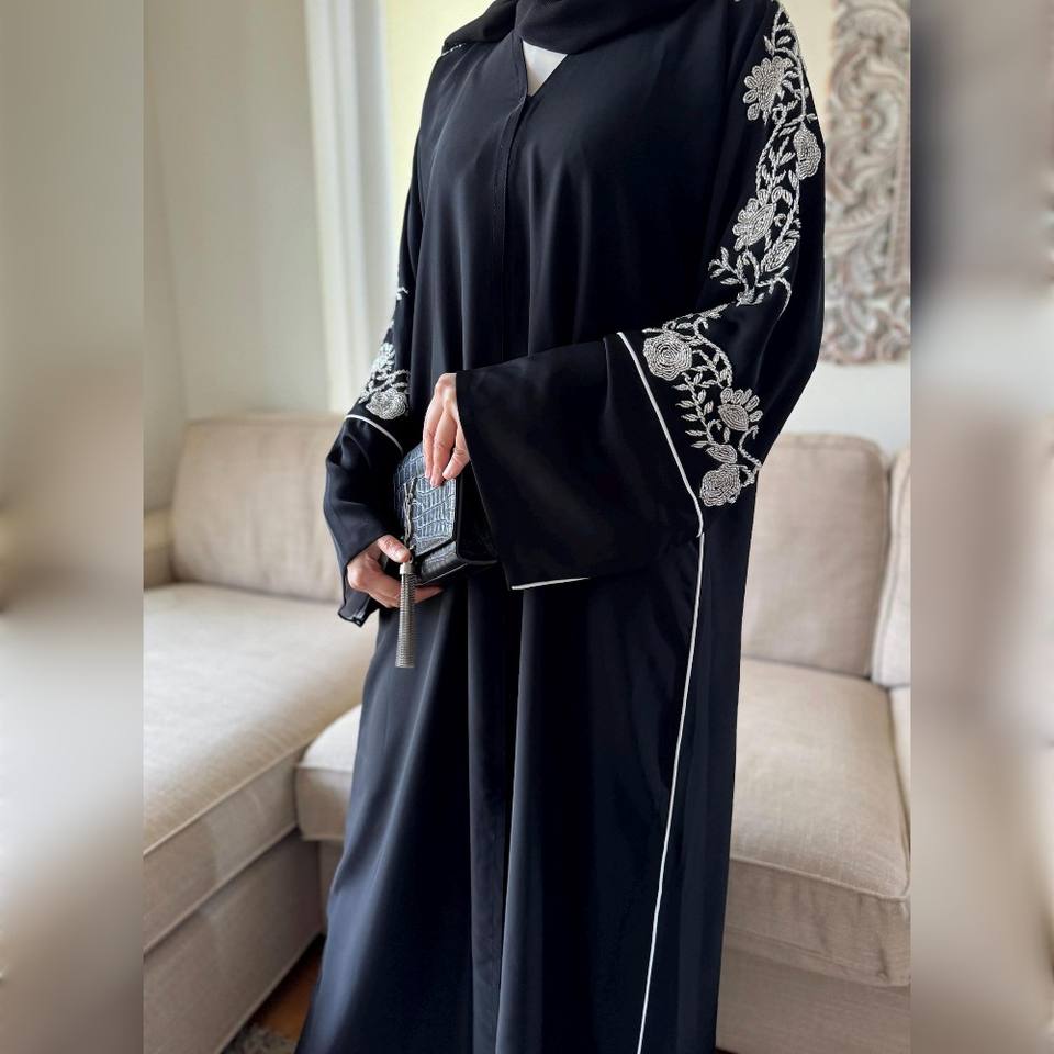 Abaya Kaftan de Dubaï Nidha, luxueuse, ornée, couleur personnalisée, en soie, anti-rides, faite à la main, perlée, modeste, longue, pour la prière