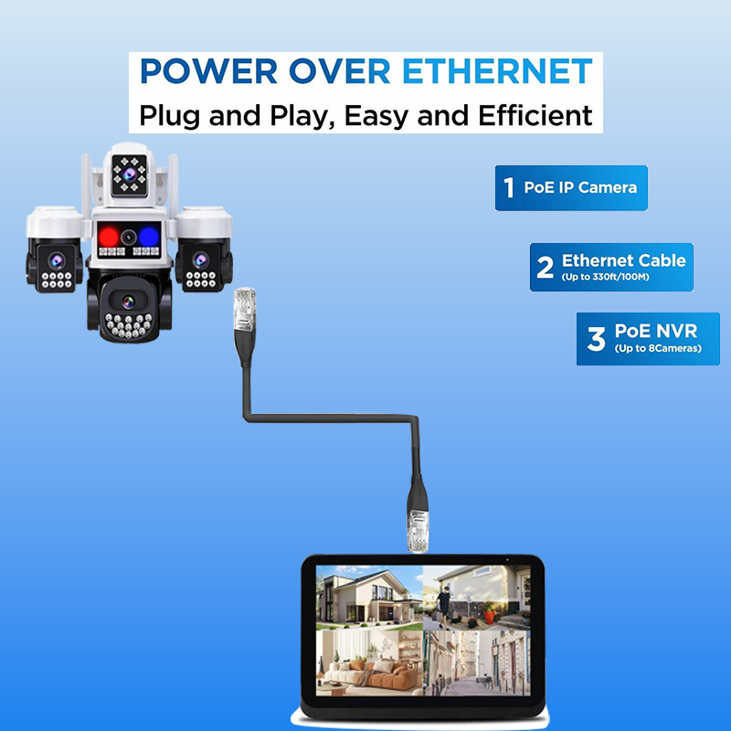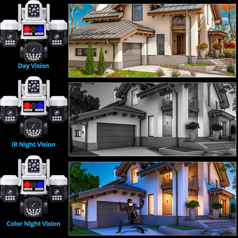 Caméra de sécurité Nie à 3 objectifs 3MP avec lumière d'alarme - Caméra de sécurité domestique HD, alerte de mouvement à large couverture pour la maison/le bureau